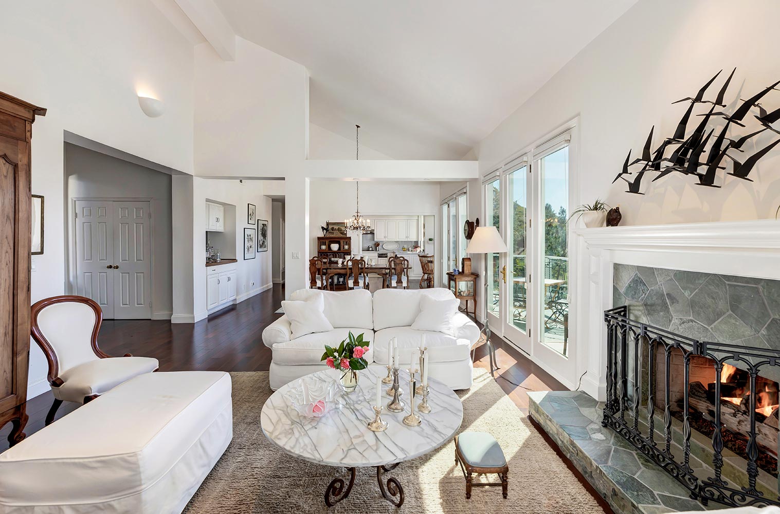 With its views of greenery, mountains, & ocean this smartly refurbished one level townhome ticks all the boxes. Perfect especially for those seeking one level living. Generously-sized 2 bedroom, den, & 2.5 baths with wood floors, vaulted ceilings & light-filled rooms. Charming updated kitchen with wonderful breakfast area. Master has 2 large walk in closets & oversized bathroom. Easy open floorplan also adds to the feeling of spaciousness. Dedicated laundry room has plenty of storage.